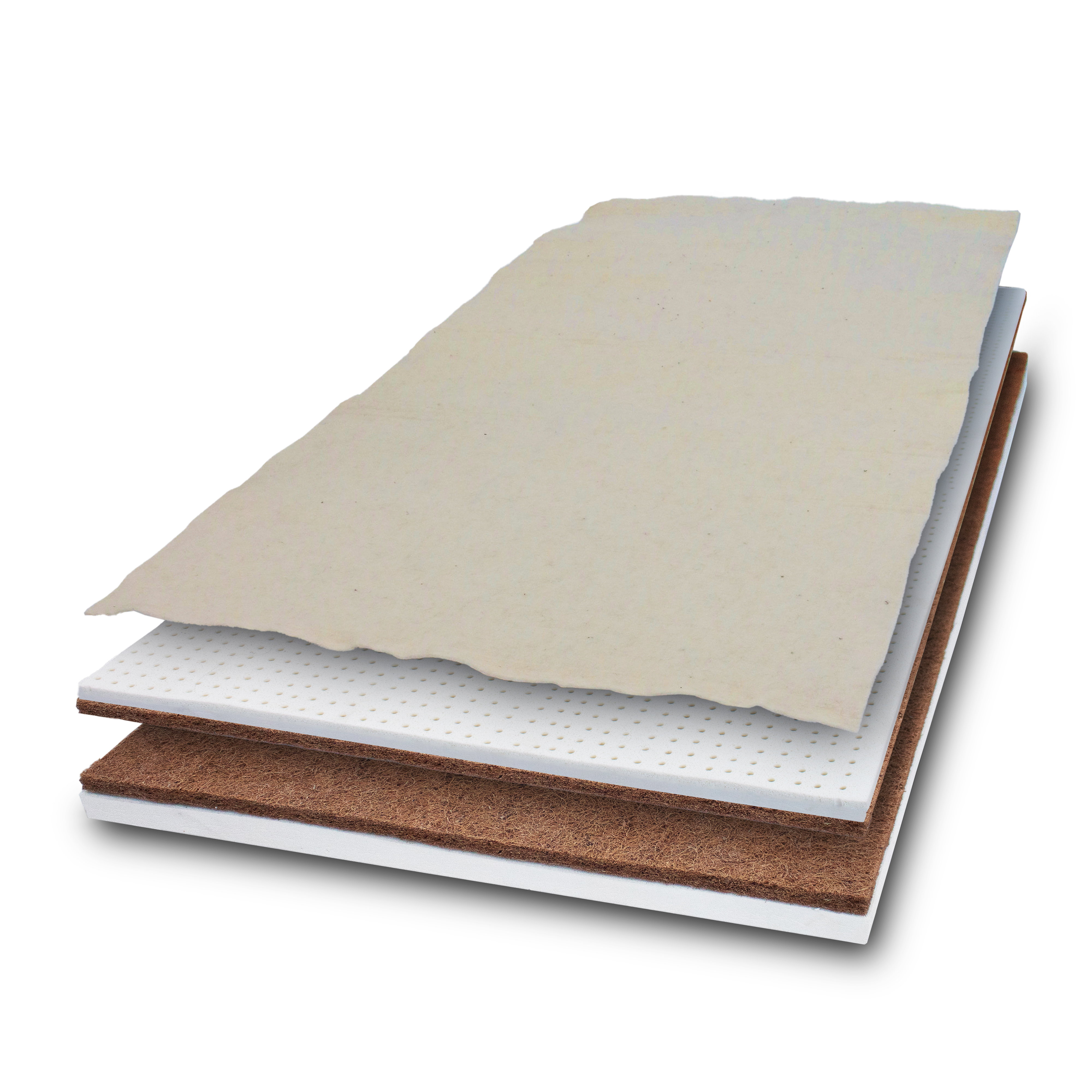 Variable Jugendmatratze mit 2 Sandwich-Komponenten, die durch verschiedene Anordnungen flexibel gestaltet werden kann. Mit einem festen Kokos-Latex-Element eignet sie sich schon für Kleinkinder. Mit dem Heranwachsen des Kindes darf die Matratze sukkzessive weicher werden. Sie entscheiden über den Härtegrad.